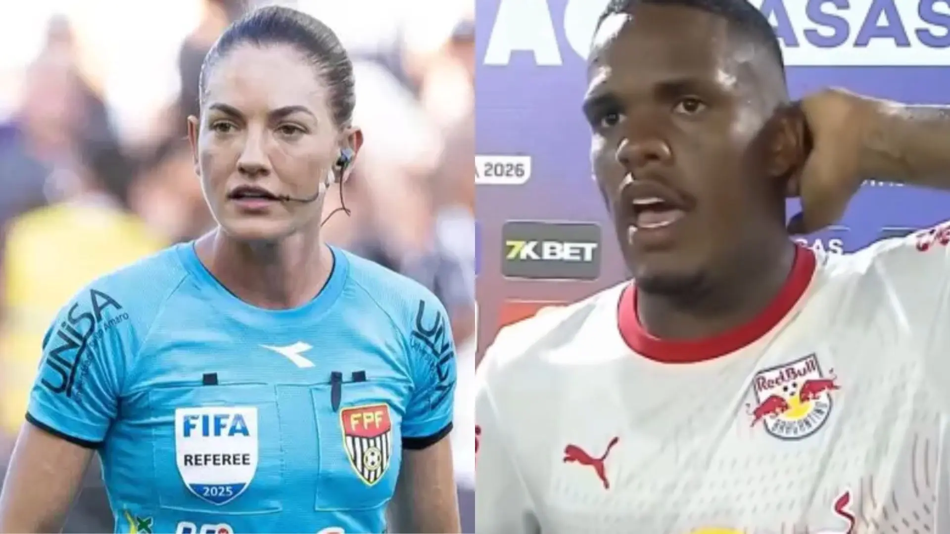 O zagueiro Gustavo Marques, que atacou a árbitra Daiane Muniz após a derrota do Red Bull Bragantino para o São Paulo...