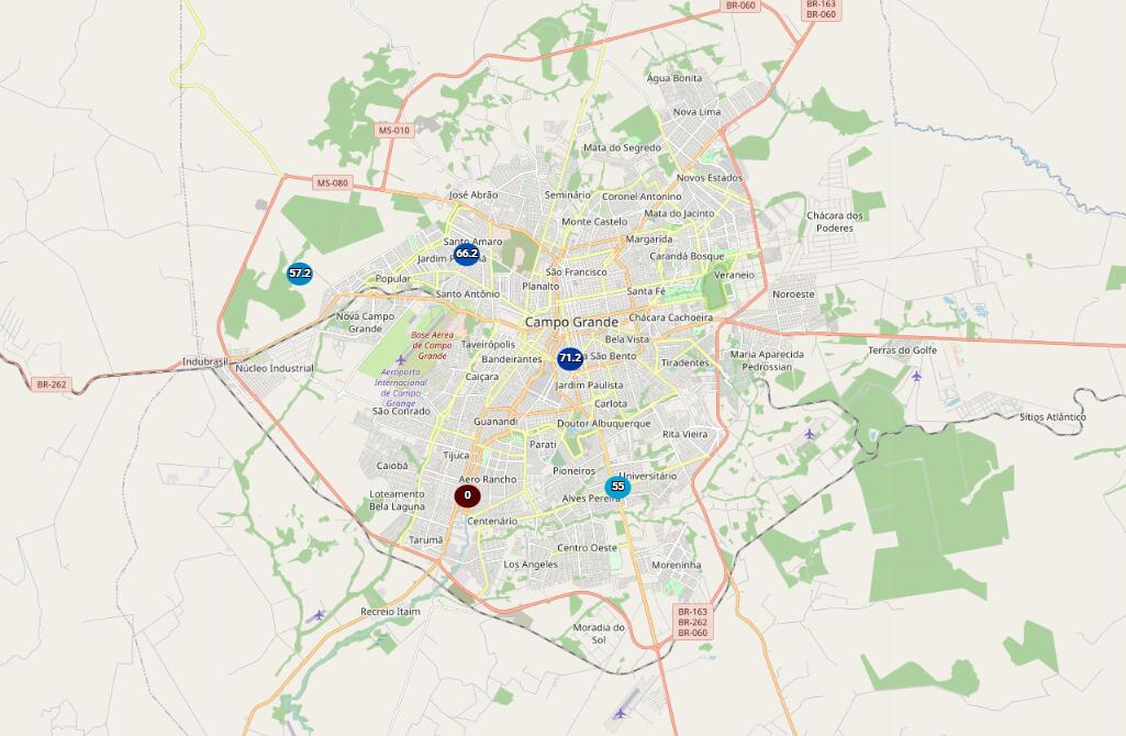 A estação do Cemaden (Centro Nacional de Monitoramento e Alertas de Desastres Naturais) da Vila Santa Luzia marcou o maior volume de chuva do período, alcançando 71,2 mm até as 6 h. Em seguida, está a estação do Jardim Panamá, com 66,2 mm.