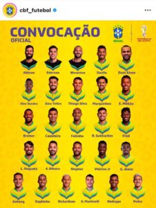 A seleção que defenderá o Brasil na Copa do Mundo do Catar, a partir do próximo dia 20, está convocada. A relação com os 26 jogadores que buscarão o hexacampeonato mundial foi divulgada pelo técnico Tite nesta segunda-feira (7), no auditório da Confederação Brasileira de Futebol (CBF), na Barra da Tijuca, zona oeste do Rio de Janeiro.