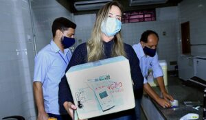 Depois de separada, foram enviadas quatro doses até ao Hospital Regional de Mato Grosso do Sul para iniciar a campanha de imunização e celebrar o momento histórico. Na ocasião quatro sul-mato-grossenses pertencentes à primeira fase da campanha foram vacinados.
