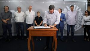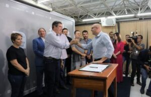 O governador Eduardo Riedel assinou nesta terça-feira (4) um convênio com os 19 municípios em Situação de Emergência, decretada em decorrência das fortes chuvas ocorridas em Mato Grosso do Sul nos últimos meses.