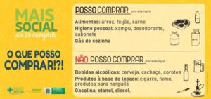 A compra de bebidas alcoólicas e produtos à base de tabaco (fumo, cigarro e similares) é proibida pela Lei nº 5.639, de 5 de abril de 2021, que criou o Mais Social. O Decreto nº 15.653, de 15 de abril de 2021, que regulamenta a lei, também fala da possibilidade de exclusão do beneficiário pelo uso indevido do cartão.